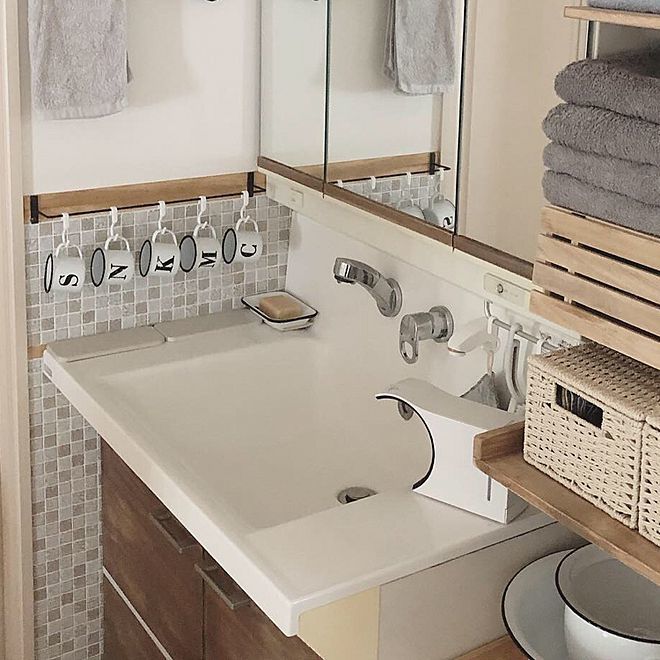我が家は洗面台の壁に…