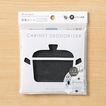 スタンドで立てたり、付属の両面テープで貼り付けたりしてシンク下に設置できる消臭シートです。