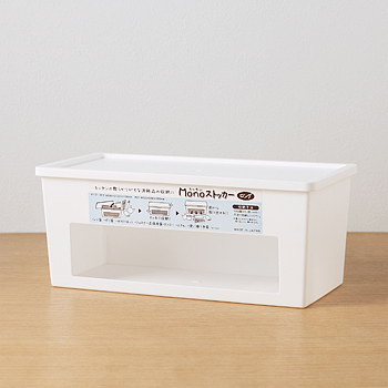 フタを開けて消耗品を収納したら、使う時は前側の取り出し口より引き出すだけ。