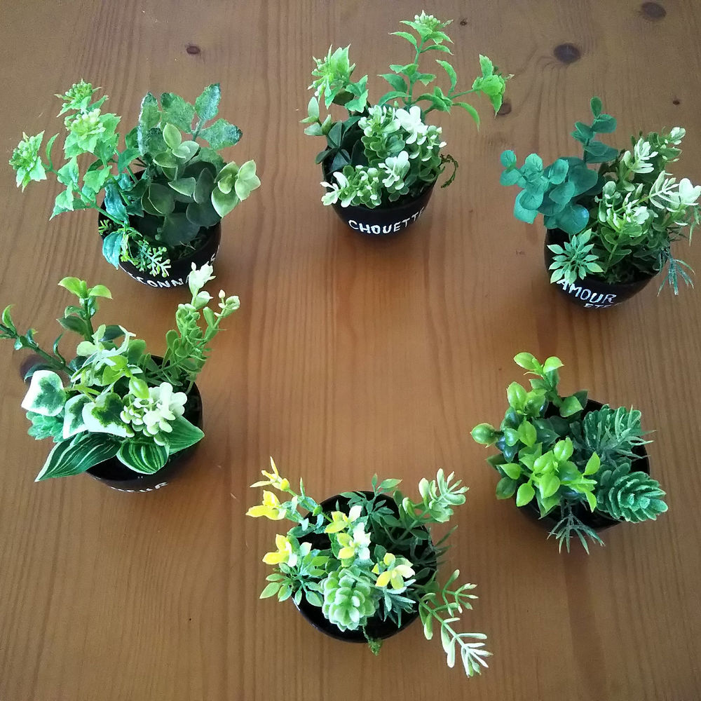 プラカップにフェイクグリーンをモリモリ植えてみました