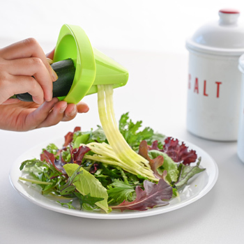 きゅうりやにんじんなどの野菜を差し込み回すと、麺のように細長くカットできます。