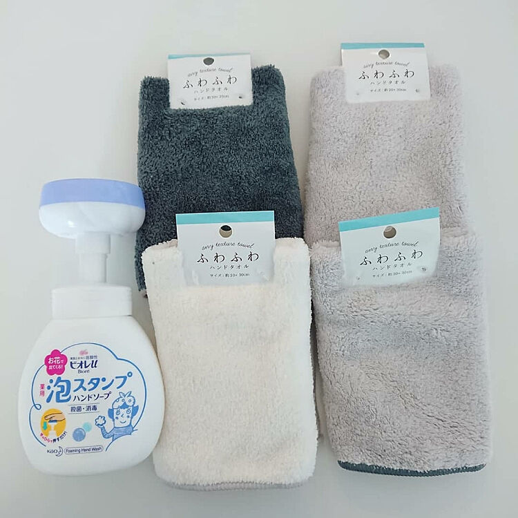 タオルも手洗いの度に変えるようにしているので、セリアのふわふわハンドタオルを買い足しました。