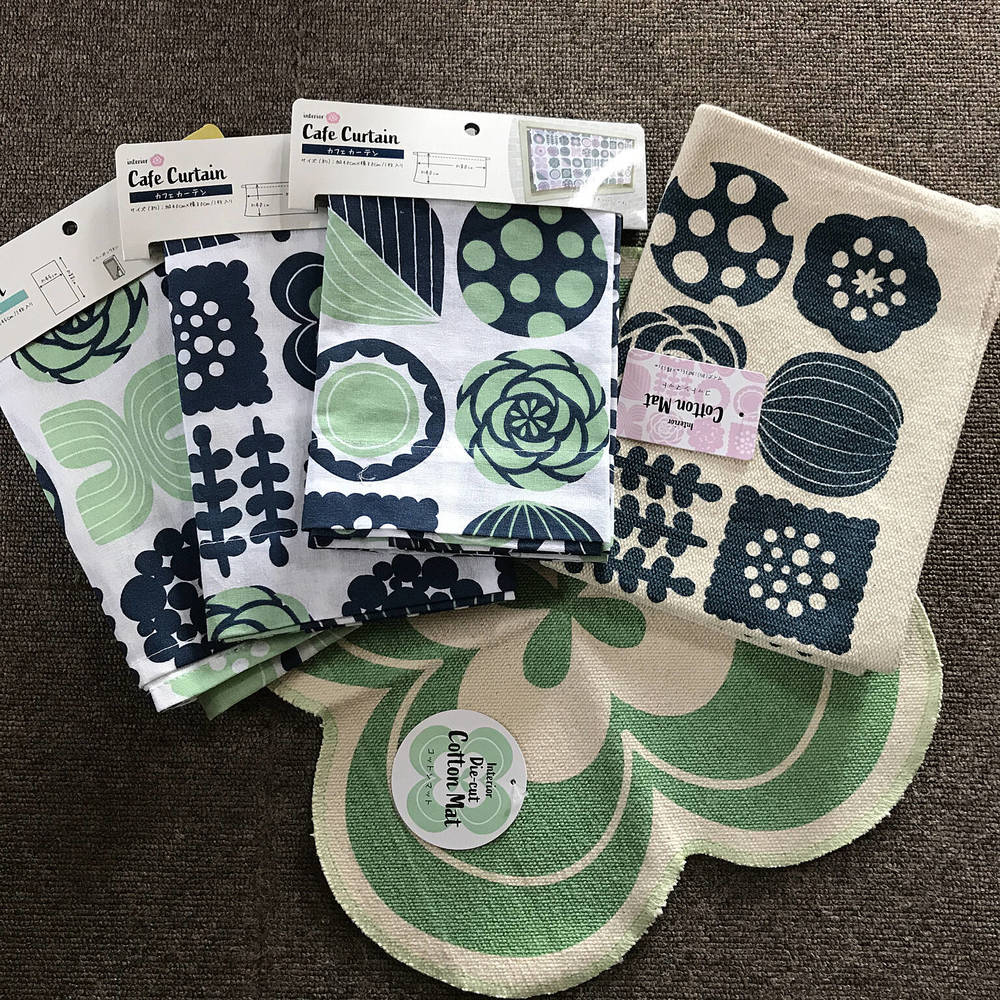 春夏向きのフリークロスとカフェカーテン、ランチョンマット、コットンマット