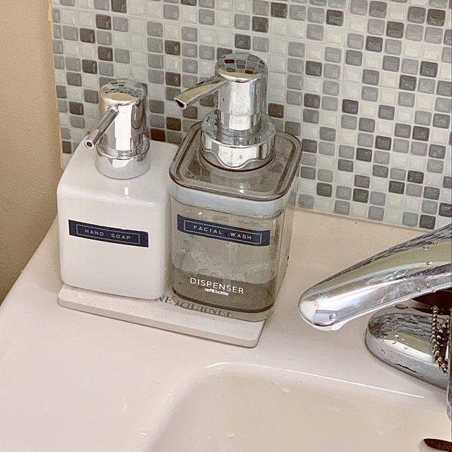 ハンドソープ、無印良品の陶器のディスペンサーに入れていたけど、口が小さくて詰め替えにくかったのでずっと交換したくて。