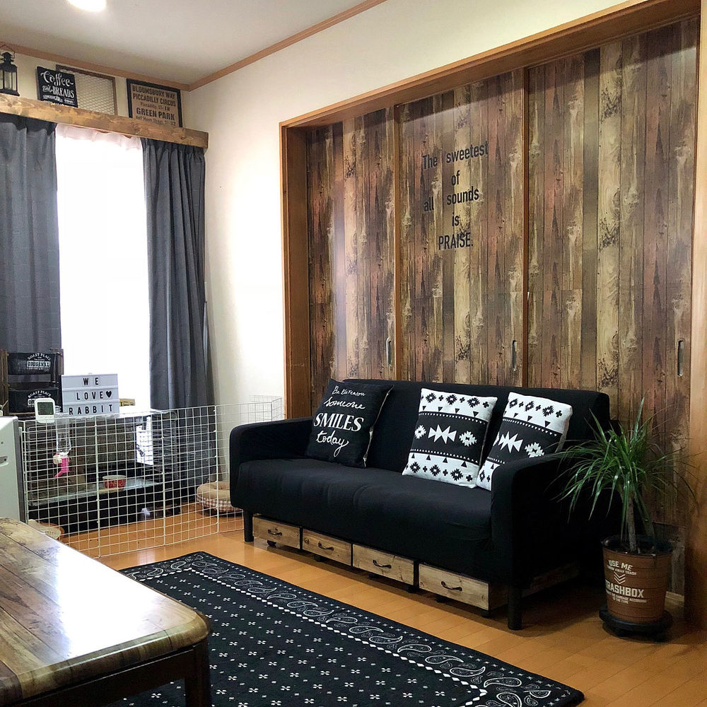 ブラウンのソファーにブラックのカバーを付けて模様替え♬