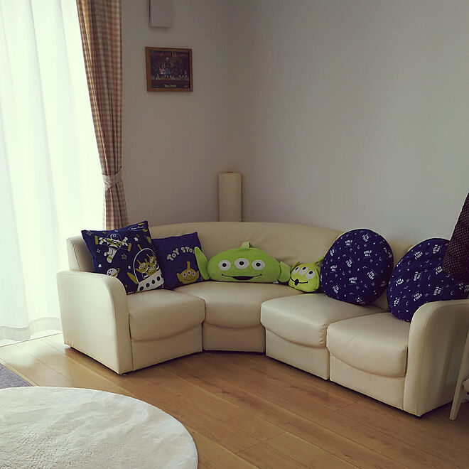 我が家のソファ🍀置いてあるクッションも、配置も、何も変化がなく定点観測状態ですが、本日の1枚🍀
