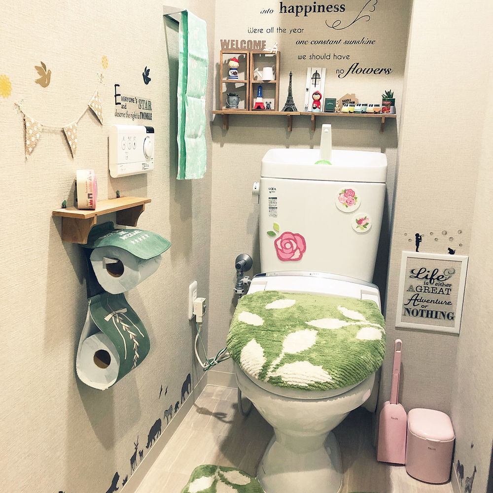 最近のトイレは緑とピンクで可愛らしくしてます꒰*´∀`*꒱♡