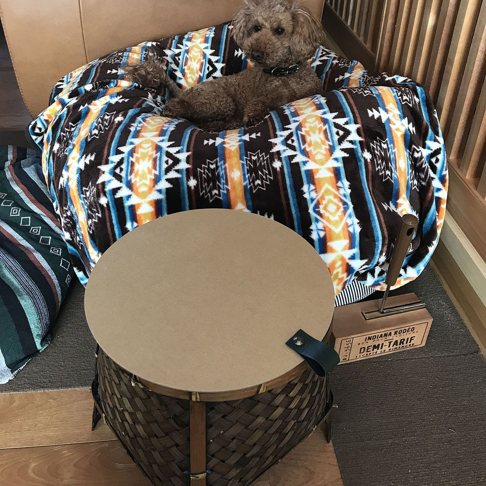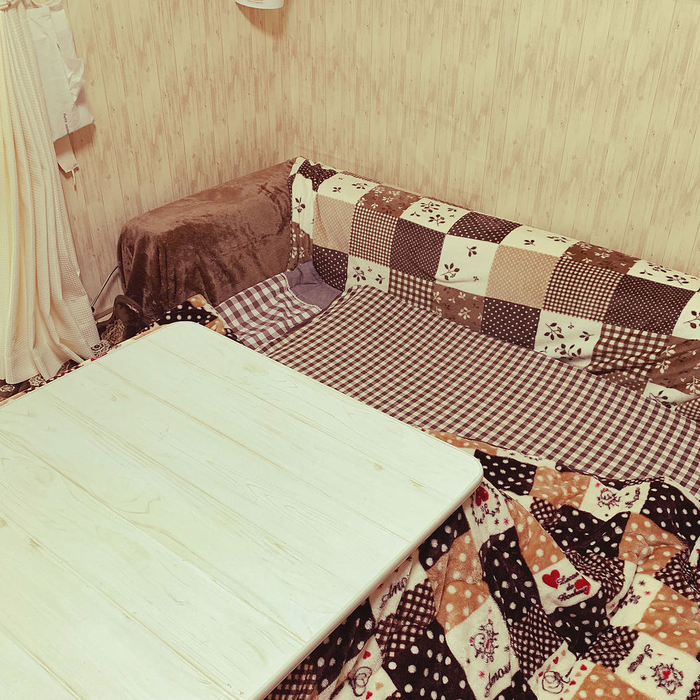 いろんなマルチカバーやブランケットを使ってマット付きローソファーにカバーをしました😊
